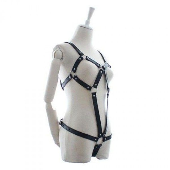 Czarny strój wykonany z miękkich, elastycznych, pokrytych materiałem pasków. Z zapięciem na plecach i kółkami z przodu. Fetysz Art od Toyz4Lovers: aby twoje najbardziej zwariowane marzenia się spełniły!